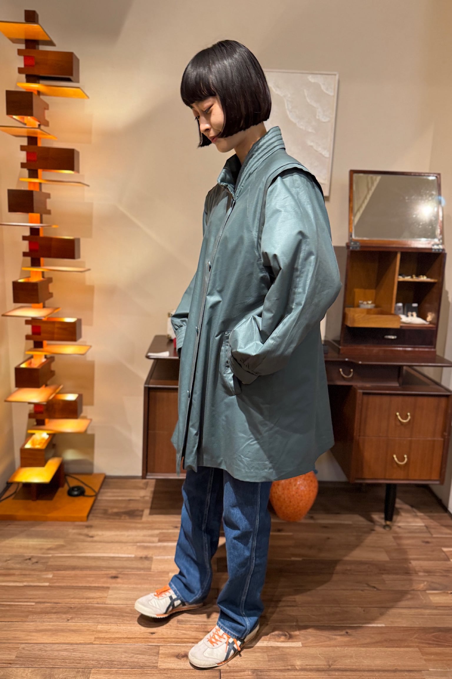 ※コートの色味は、2人目のモデルの画像が近いです。