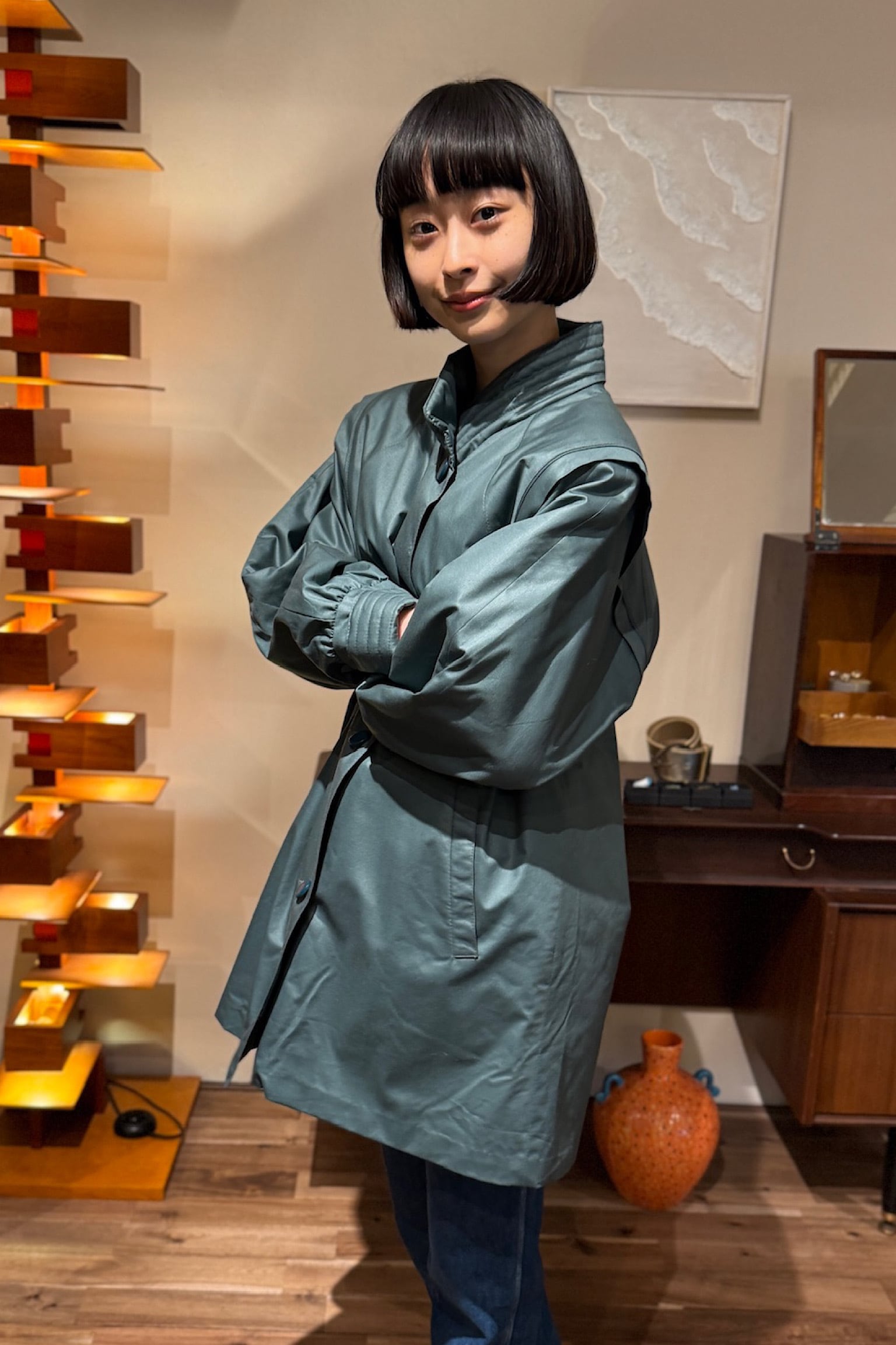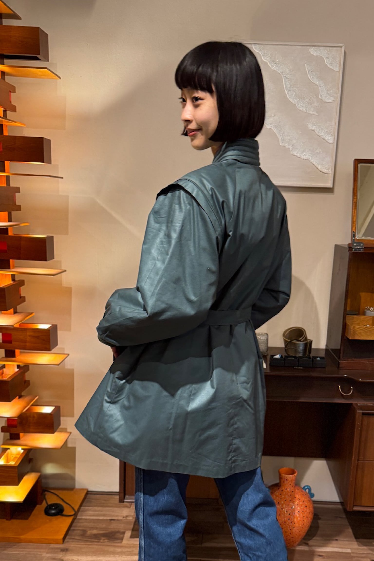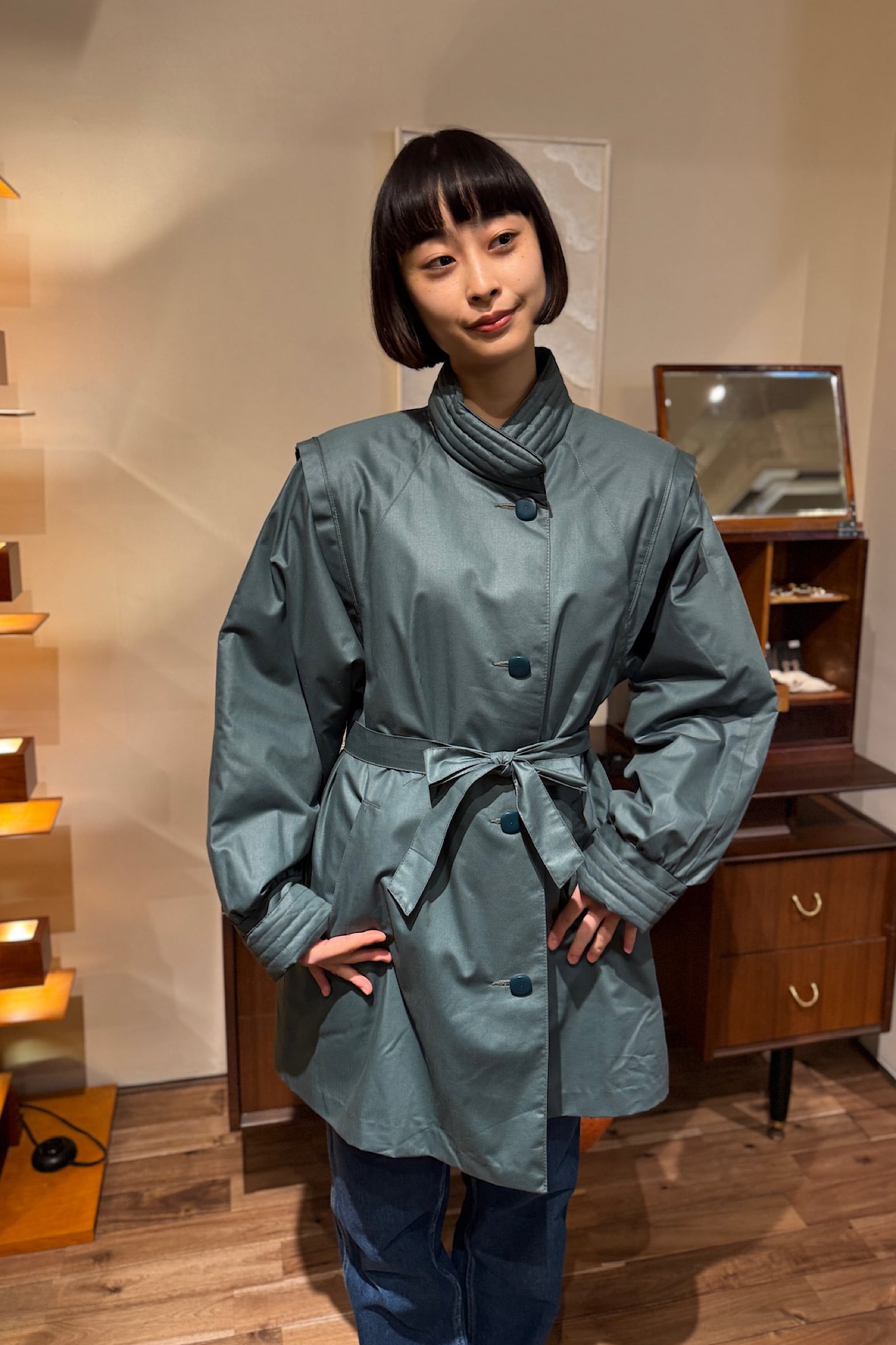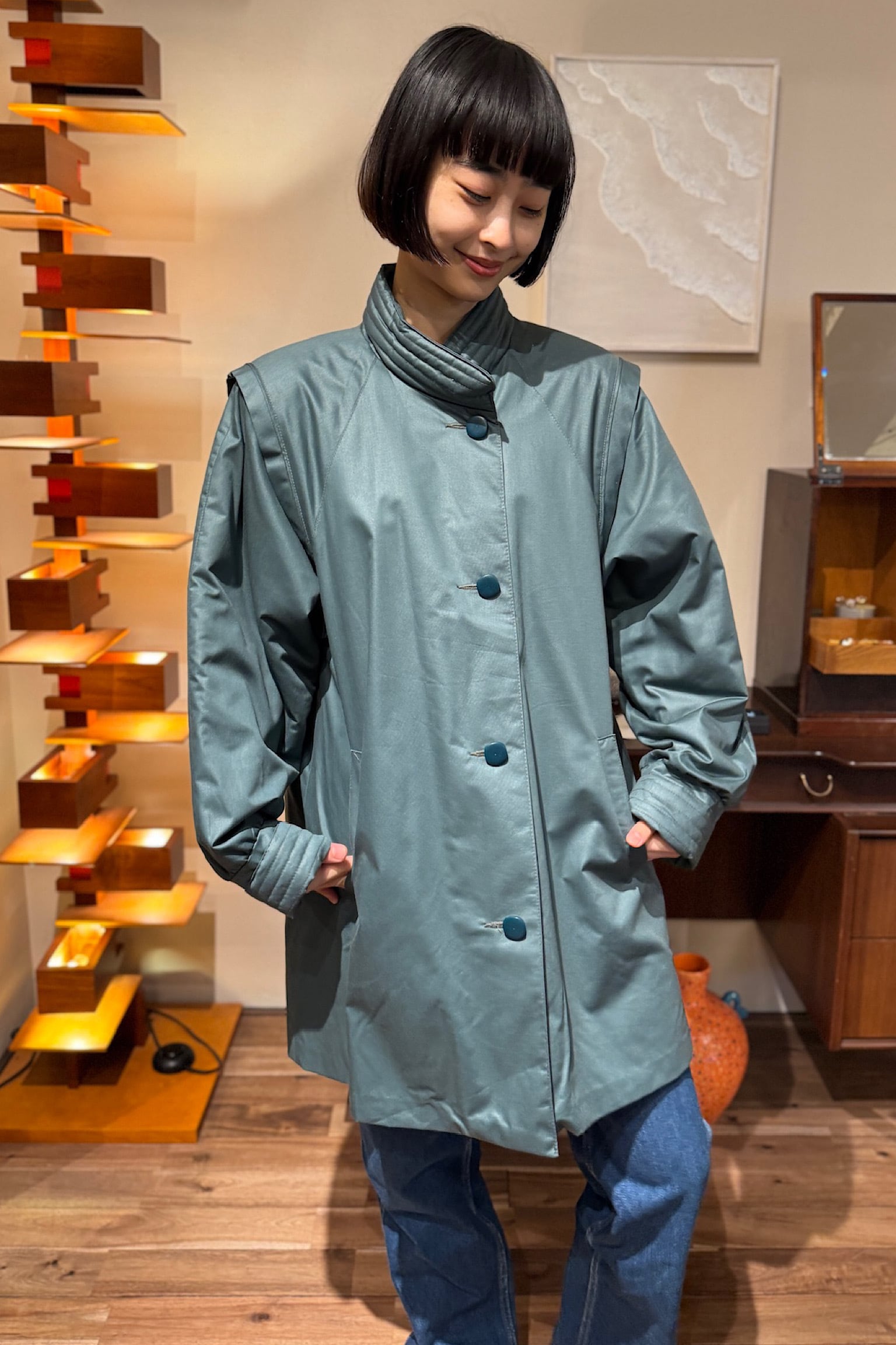 SCANDINAVIAN LOOK グリーンキルティングコート