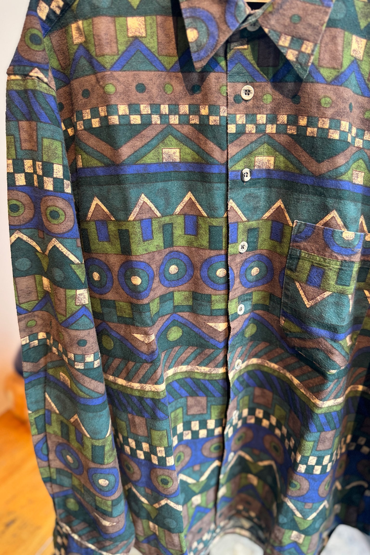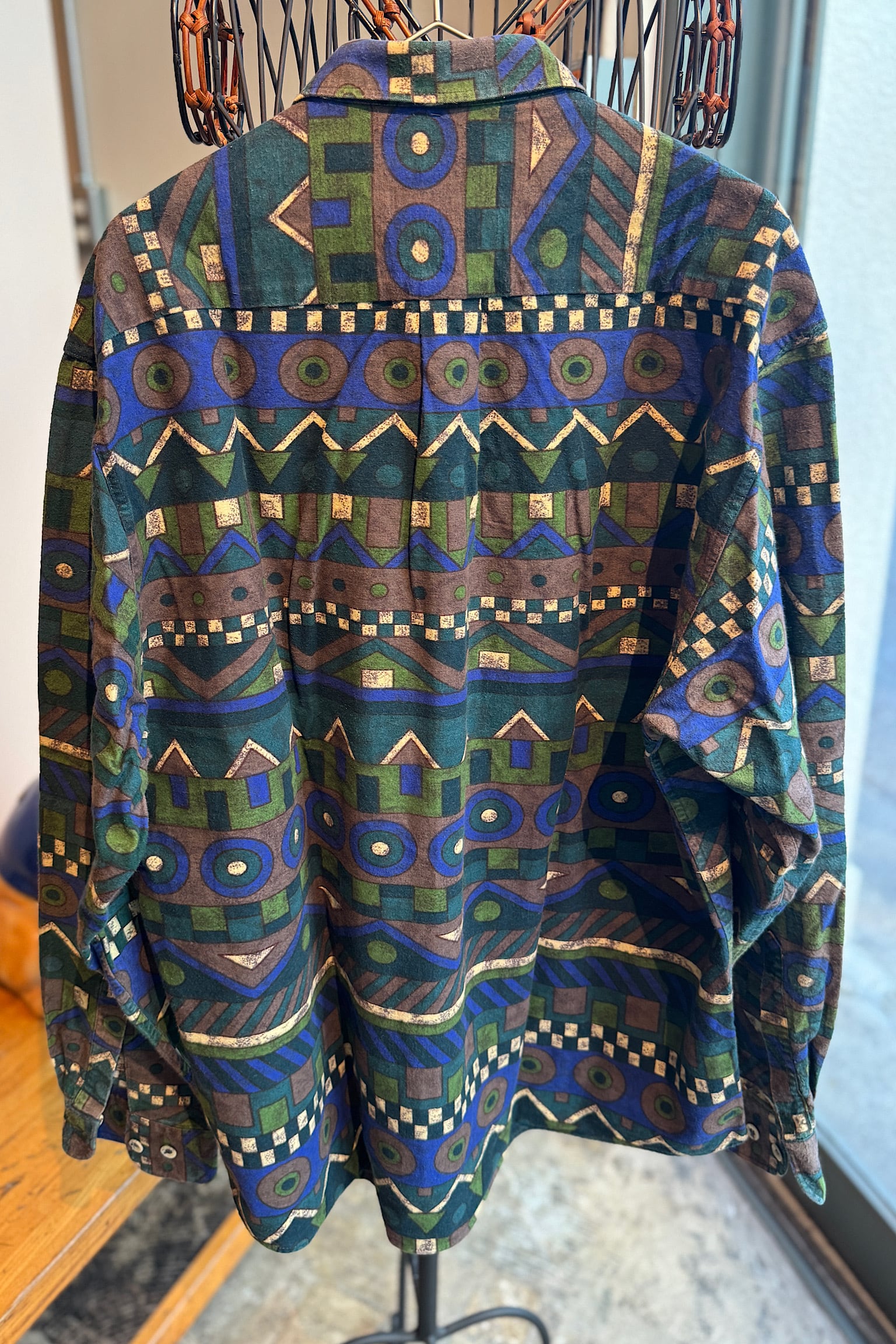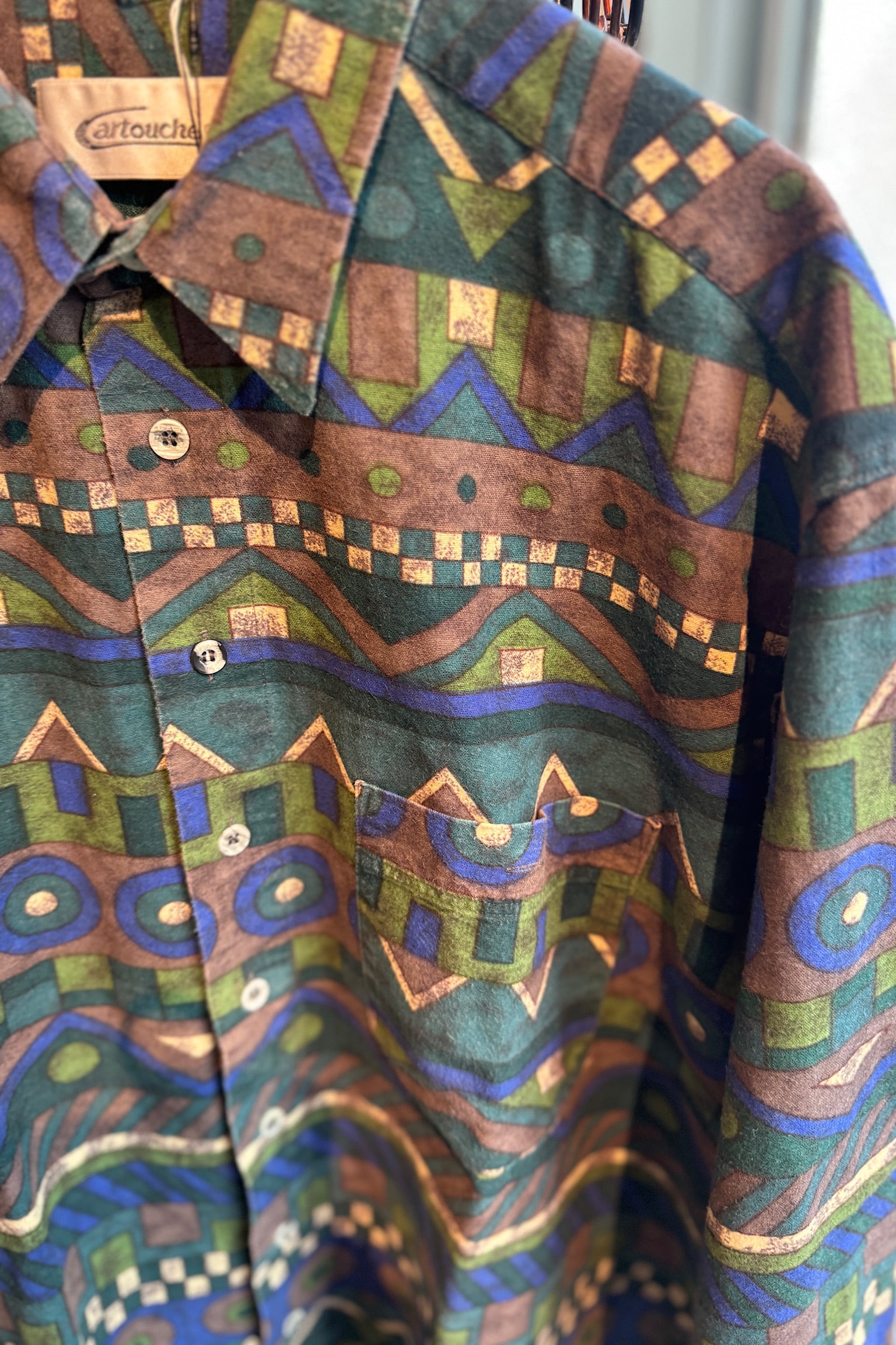 ジオメトリックパターンシャツは、独自のデザインとヴィンテージならではの風合いを兼ね備えた一着です。
