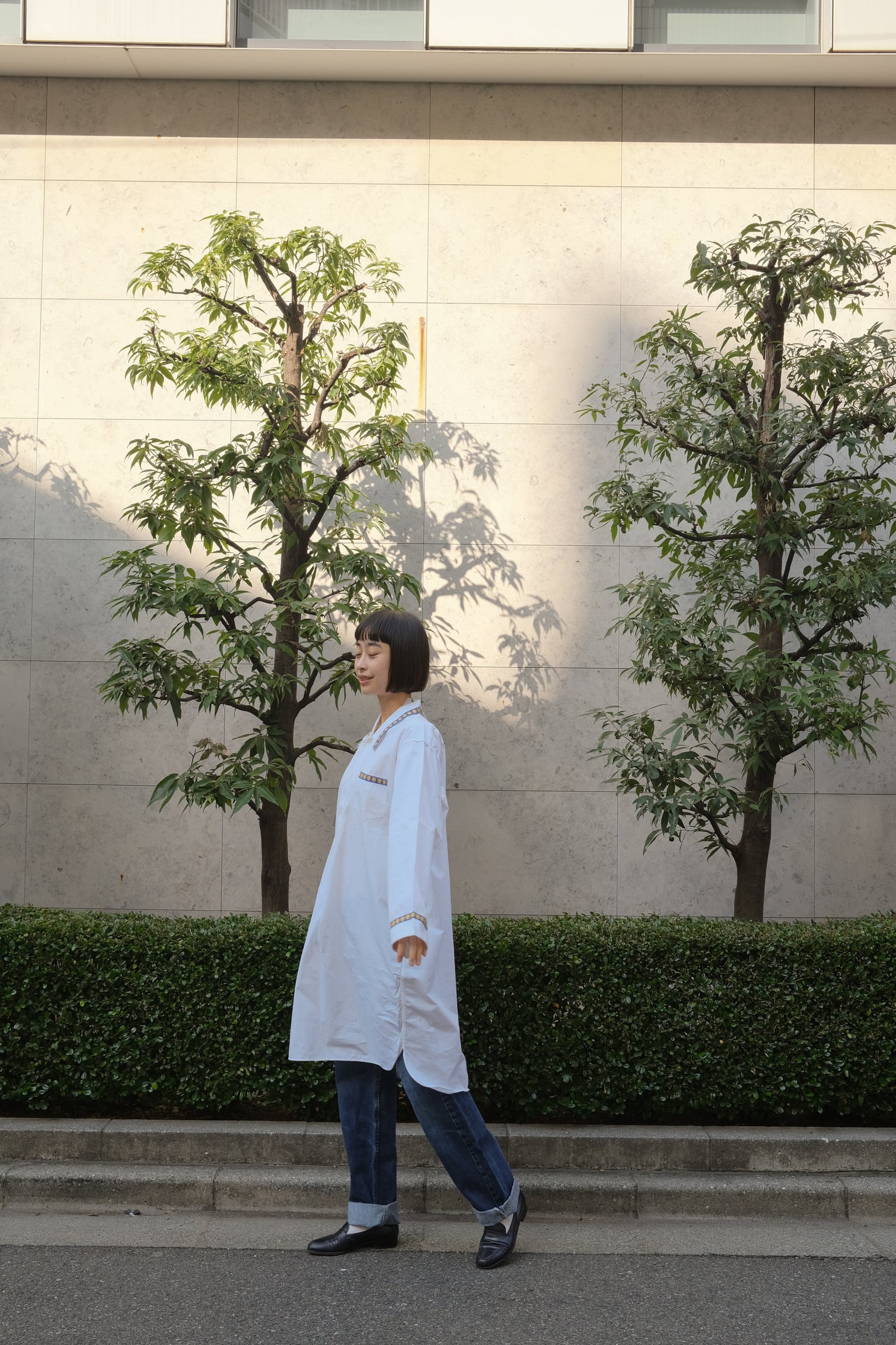 元々はメンズのアイテムですが、女性がデニムパンツなどとレイヤードするのがおすすめ。