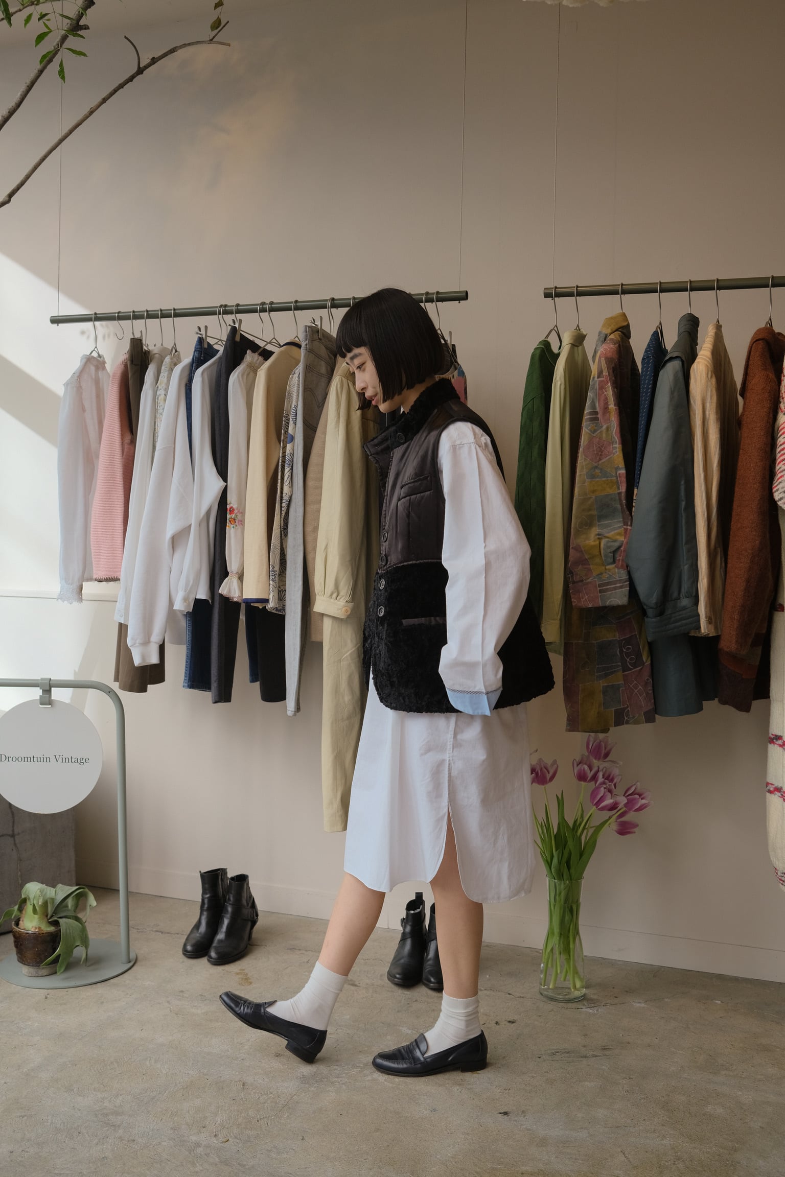 元々はメンズのアイテムですが、女性がワンピースのように着るのがおすすめ。