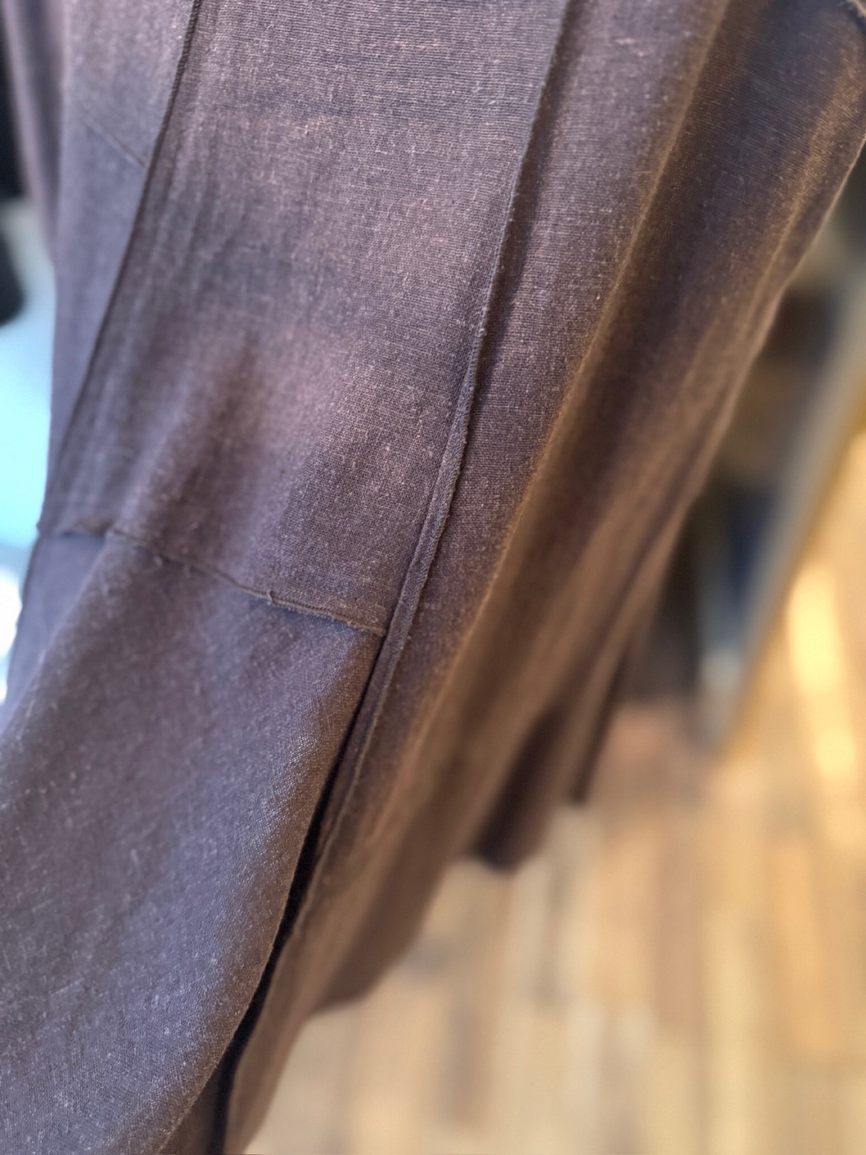 切りっぱなし風のシーム(縫い目)がアクセントになっており、ボヘミアン・シックな雰囲気が漂います。