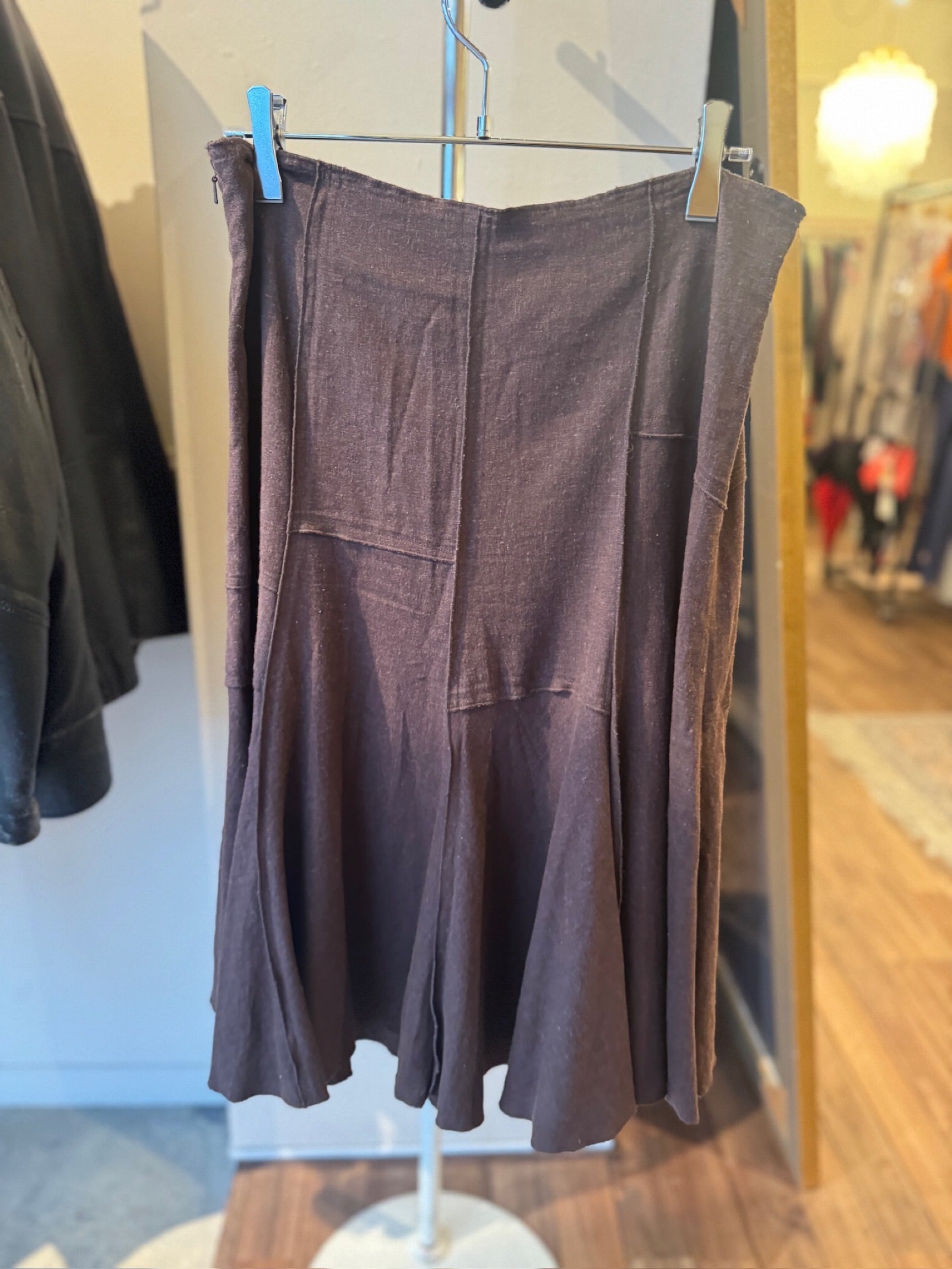 複数の布地をパッチワークのように複雑に繋ぎ合わせた、非常に凝った作りのパネルスカートです。
