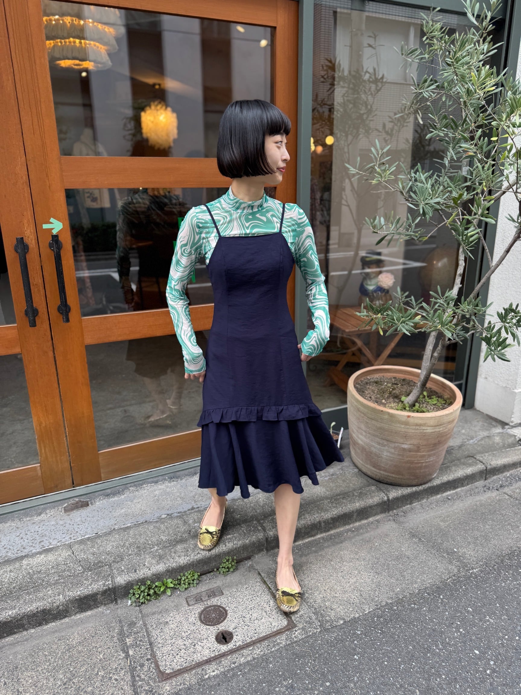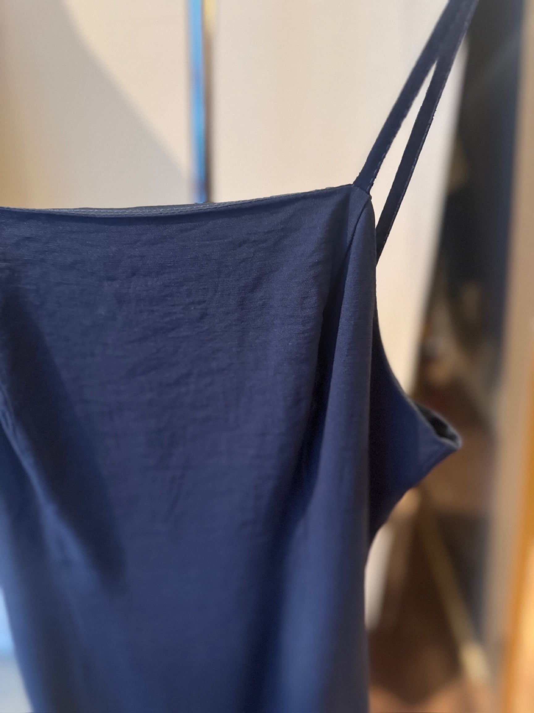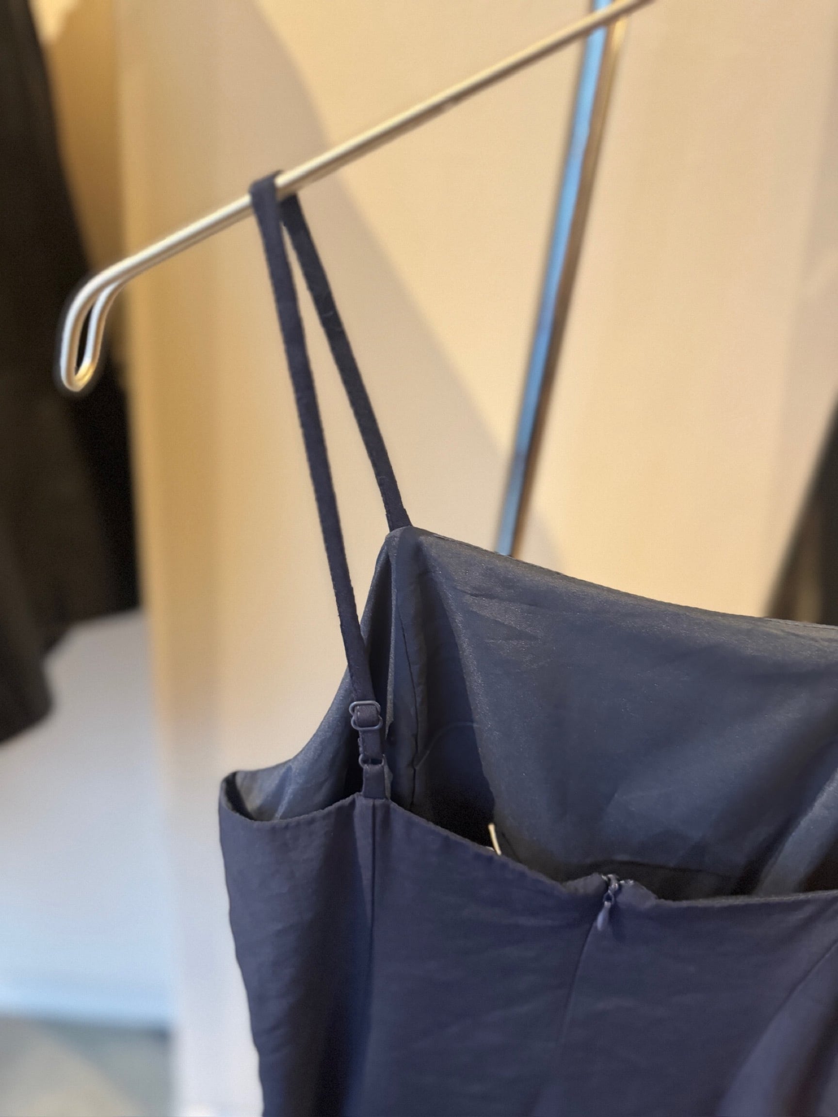 THE EDITOR'S MARKETのネイビーカラーのキャミソールドレスは、シンプルでありながらも個性的な魅力を放つ一着です。