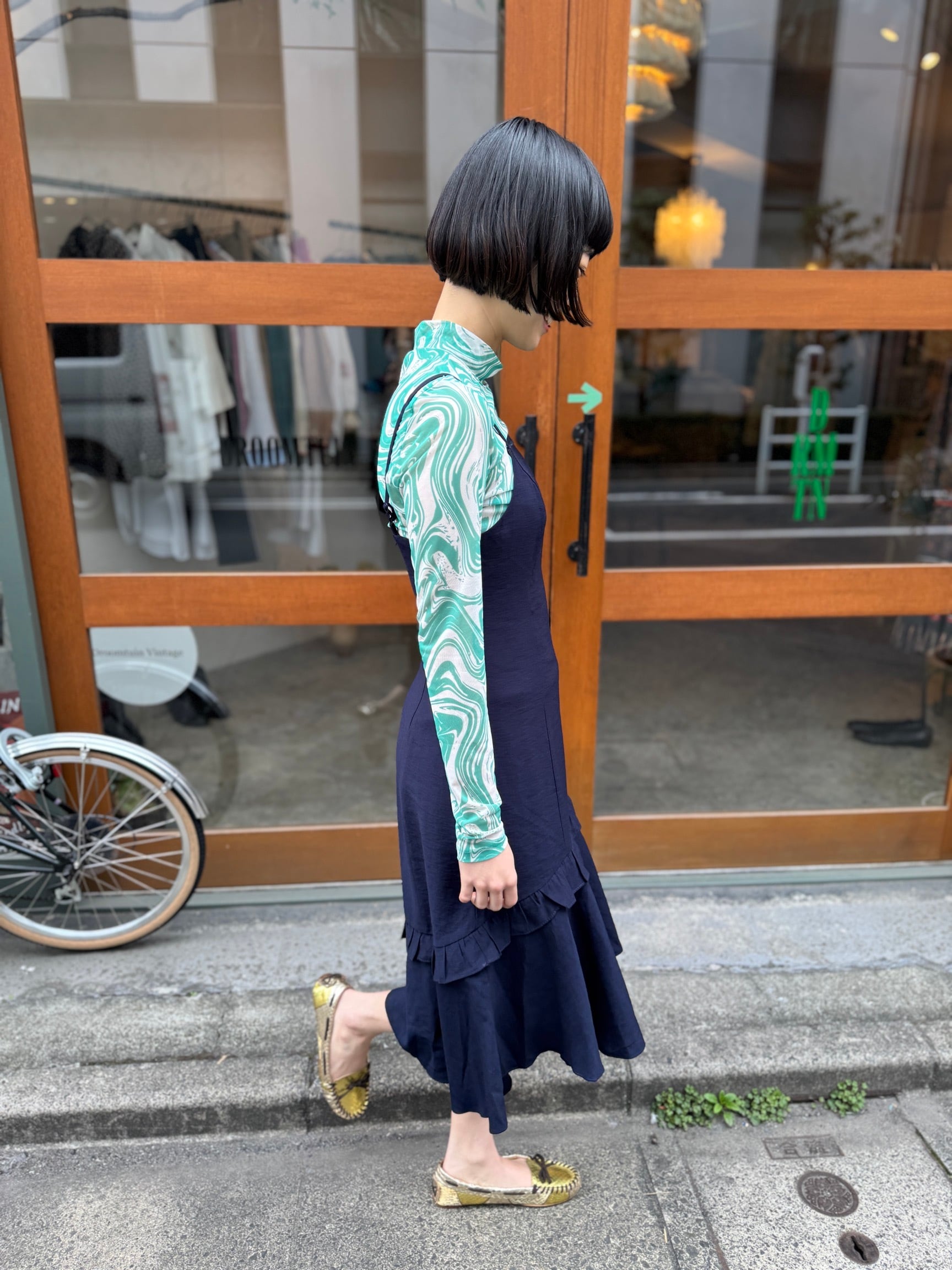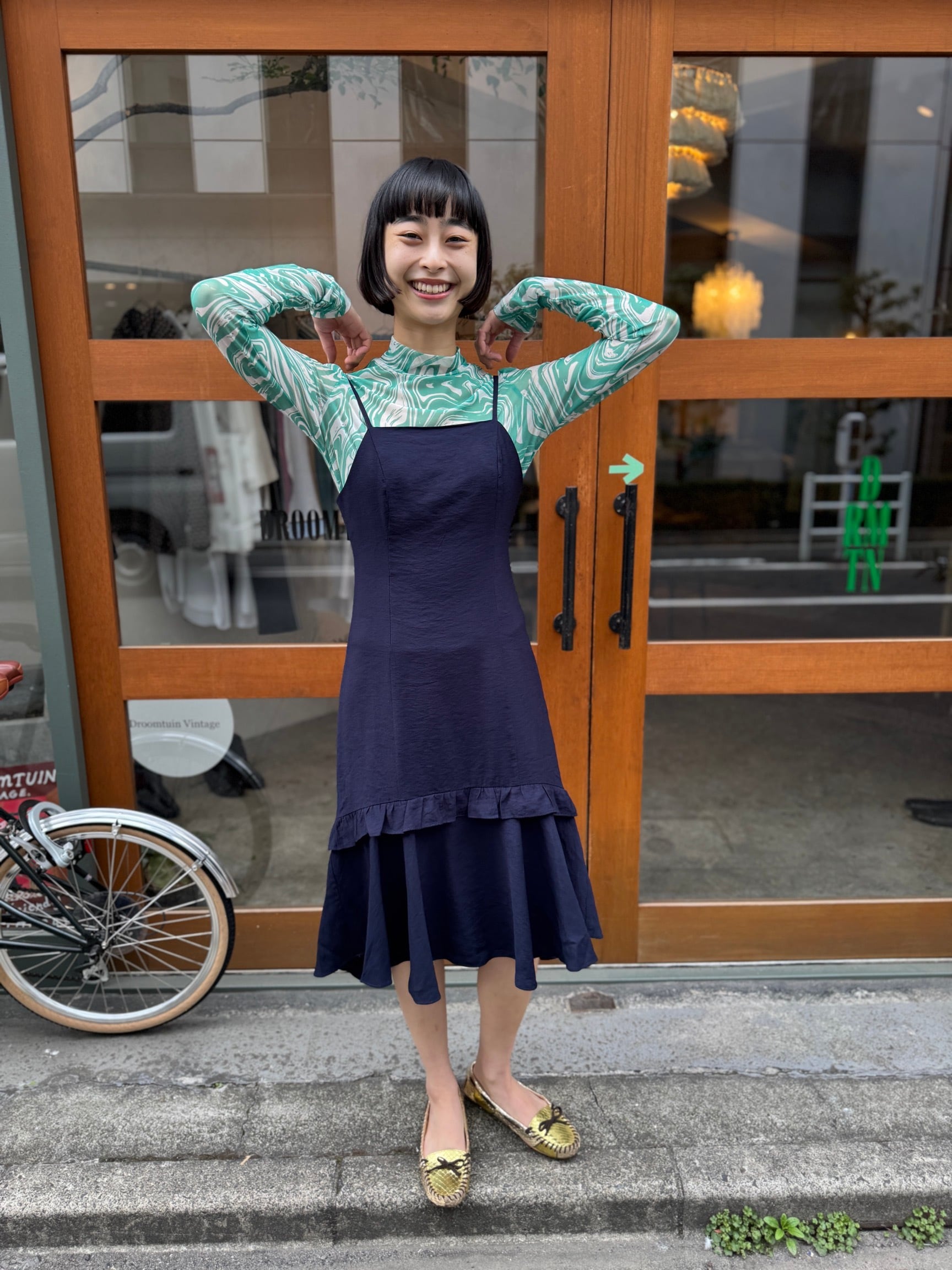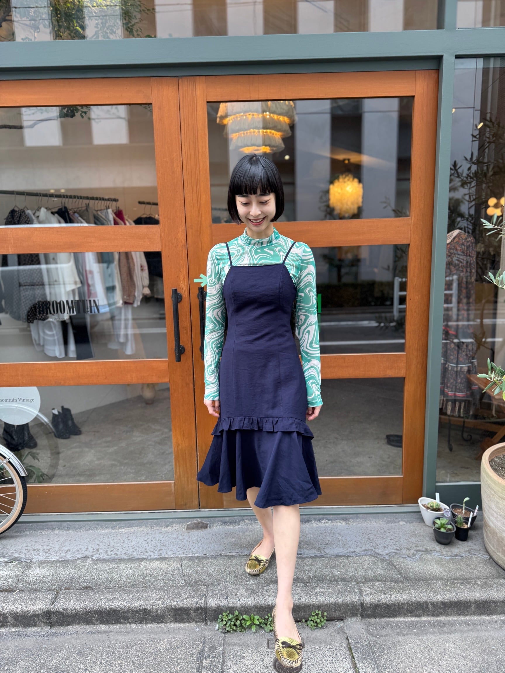 THE EDITOR'S MARKETのネイビーカラーのキャミソールドレスは、シンプルでありながらも個性的な魅力を放つ一着です。