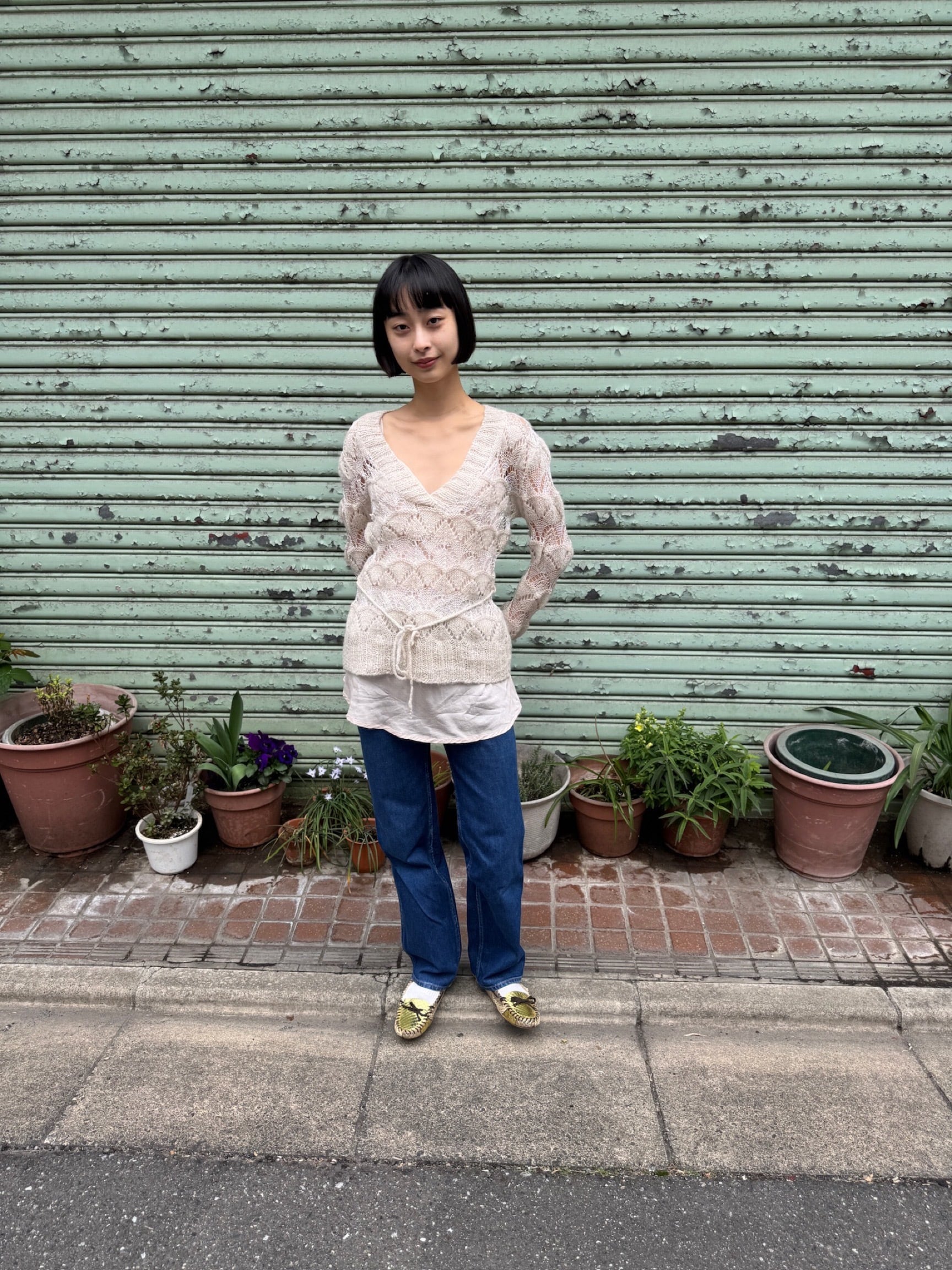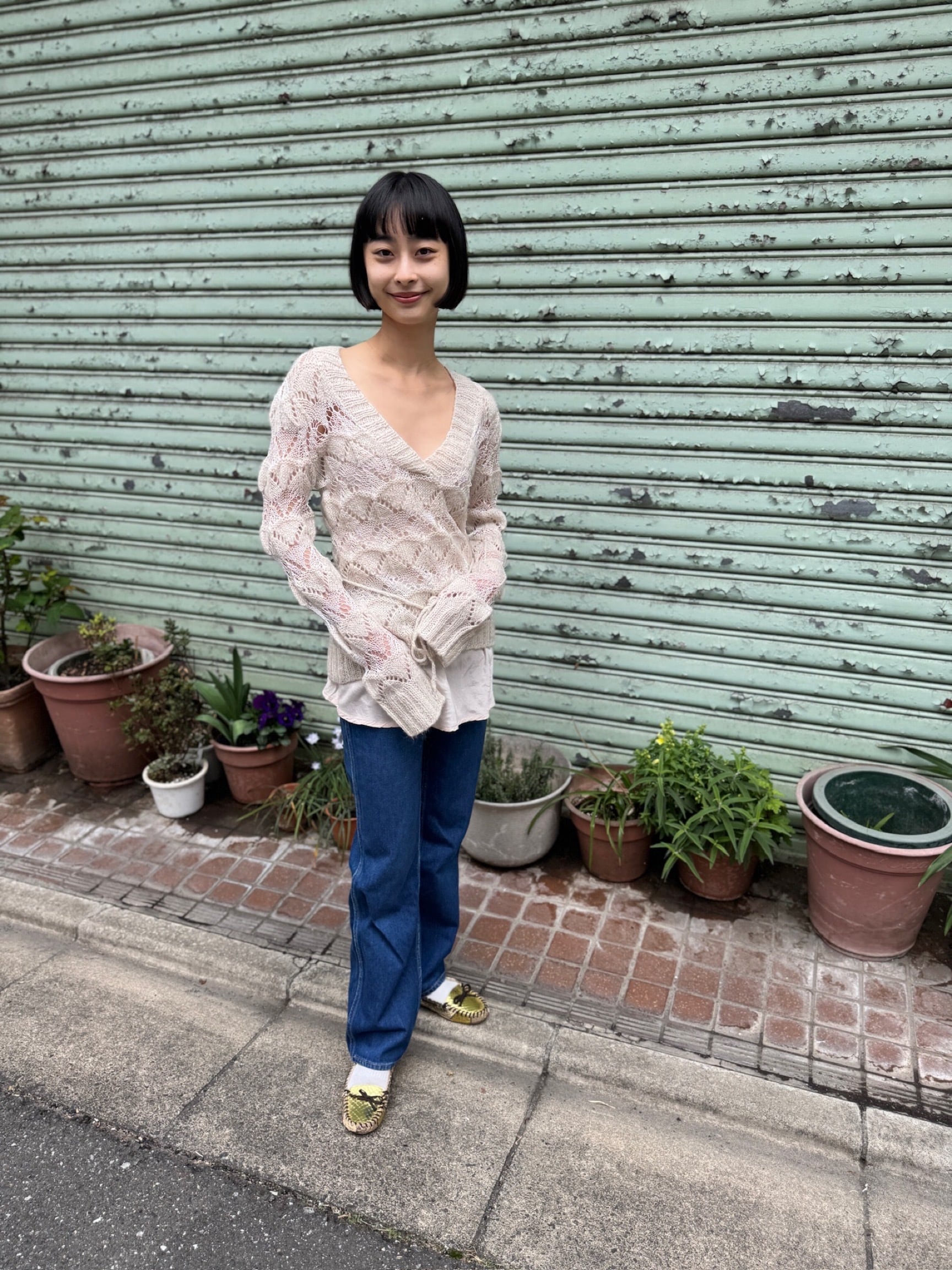 Vネックのデザインがデコルテラインを美しく見せてくれ、カジュアルなデニムパンツやスカートと合わせれば、休日のお出かけにもぴったりです。