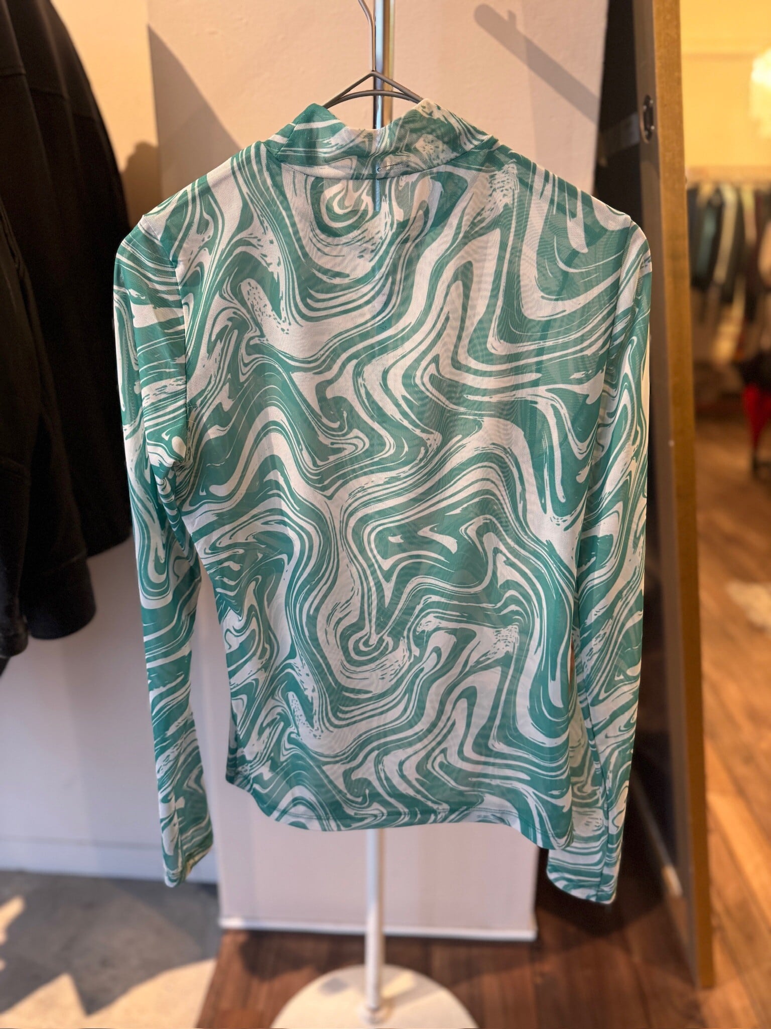 Y2Kグリーンマーブルシアートップスは、まさに90年代後半から2000年代初頭のトレンドを体現した逸品です。