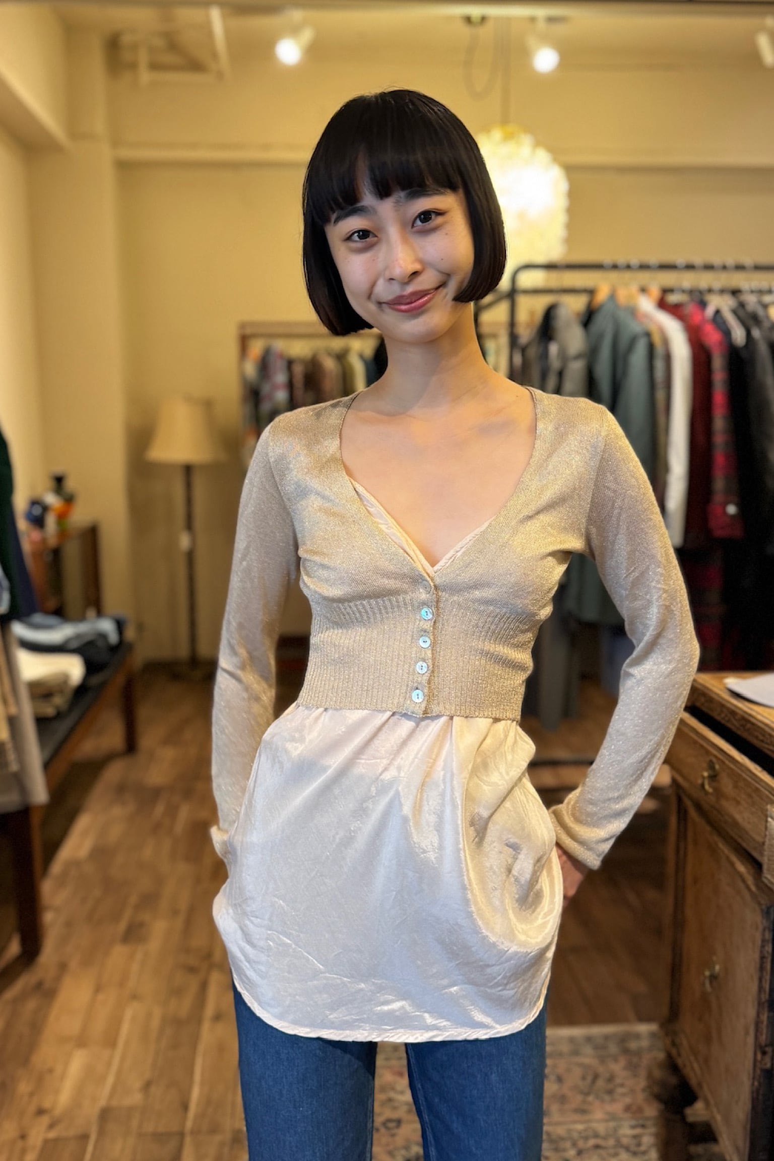 ヴィンテージ感漂う風合いを持ちながらも現代的なスタイルとも調和しますので、カジュアルなデニムやスカートとの相性が抜群です。