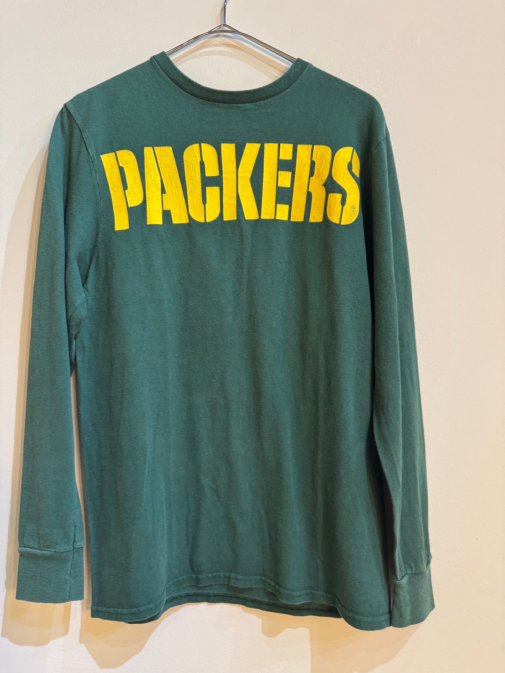 NFL PACKERSロングTシャツは、スポーティーさとヴィンテージ感が見事に調和した一枚です。胸元にあしらわれたチームロゴが存在感を放ちます。