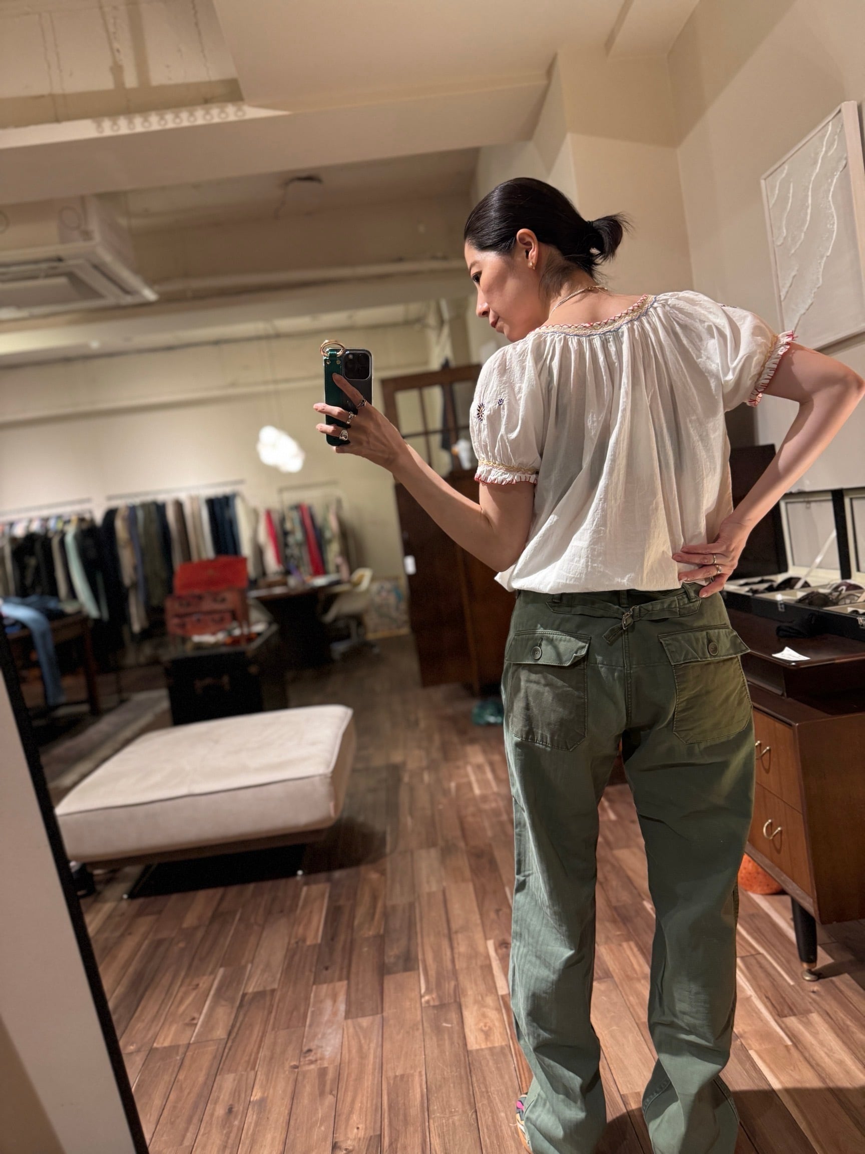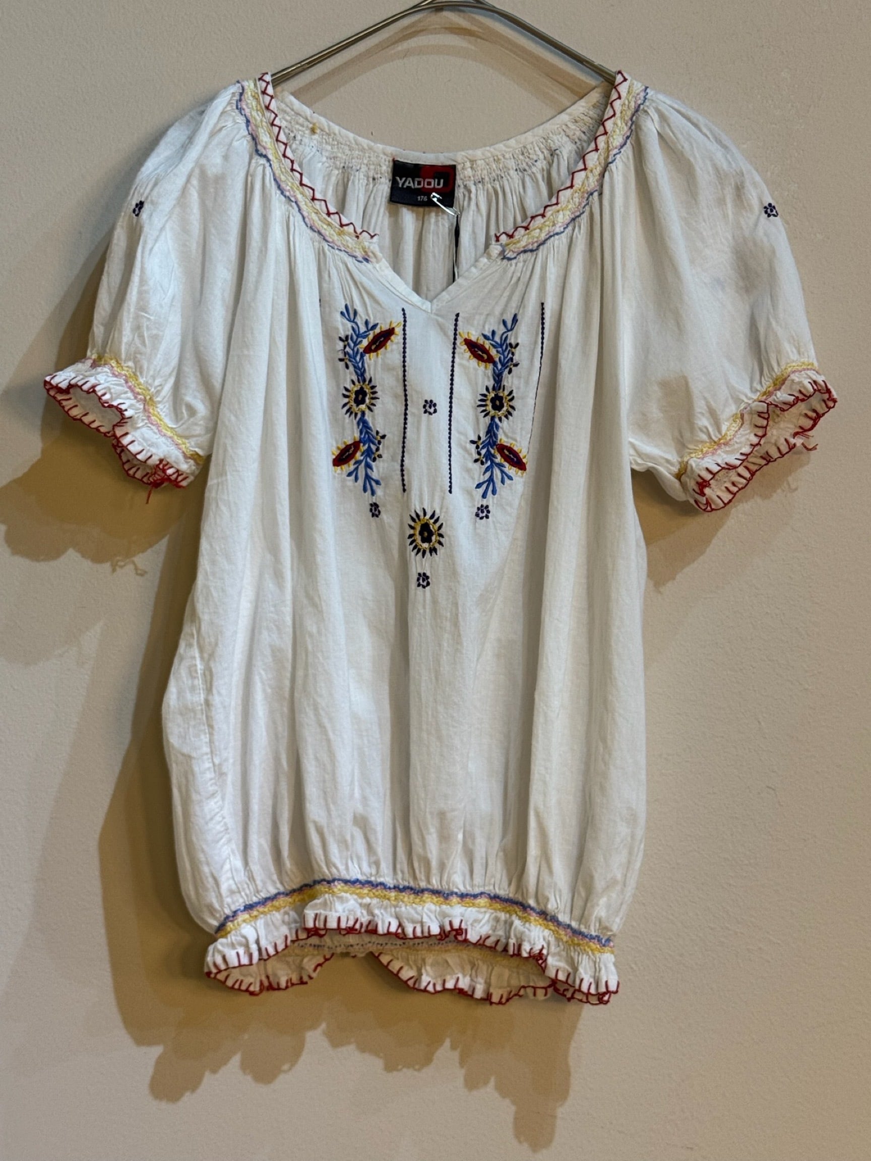 繊細な刺繍が施されたトップスは、クラシカルでありながらも現代的なスタイルにマッチします。