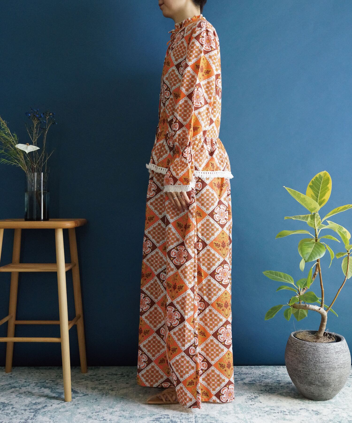 70年代ごろのヨーロッパの7分丈マキシドレス。