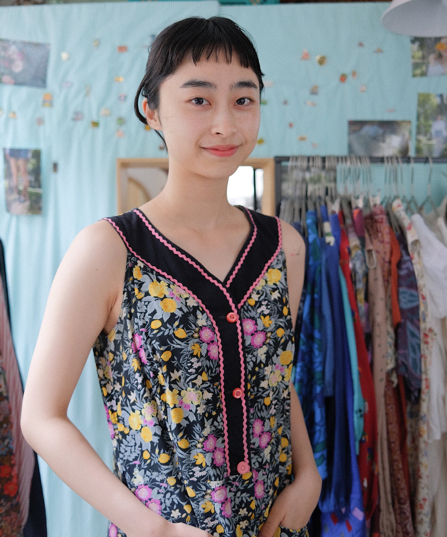 ノースリーブの1枚で素敵に決まるフラワードレス。